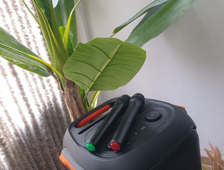 Voeg een microfoon toe voor extra gemak tijdens uw feestje.